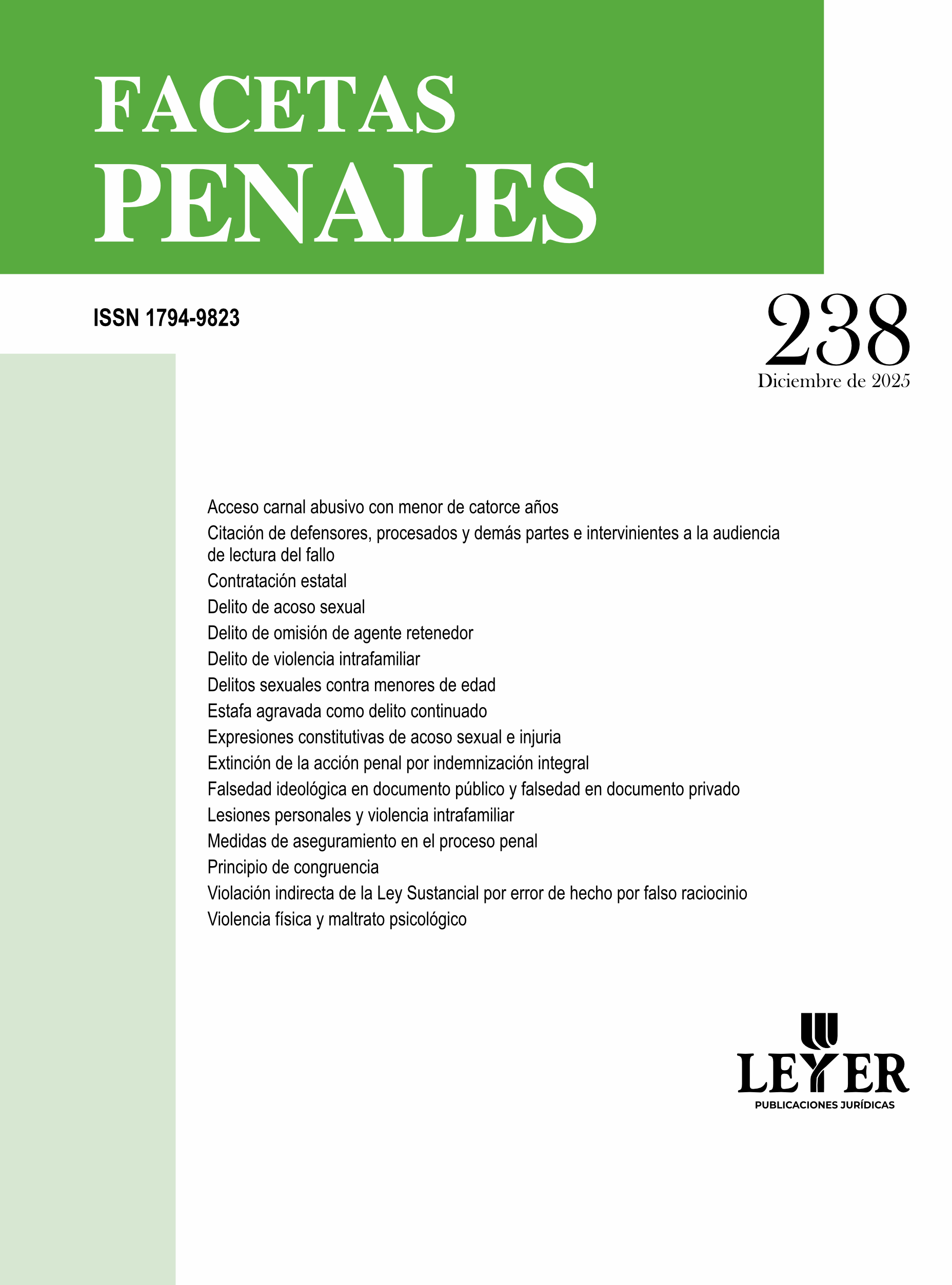 Publicación mensual. Contiene las decisiones más importantes proferidas por los Altos Tribunales nacionales y extranjeros en materia penal.